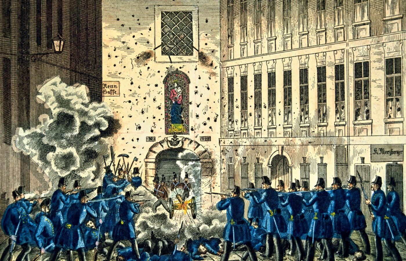 W marcu 1848 roku fala demonstracji ogarnęła Wiedeń i doprowadziła do ucieczki kanclerza Klemensa Metternicha. W kwietniu 1848 roku cesarz Ferdynand I, ogłosił konstytucję wprowadzającą podstawowe wolności polityczne i trójpodział władzy. Izba niższa parlamentu miała być obsadzana w drodze wyborów, jednak przy zachowaniu wysokiego cenzusu majątkowego i wykształcenia. Doprowadziło to do wybuchu kolejnych zamieszek 15 maja 1848 roku. Ich efektem były kolejne ustępstwa władzy: