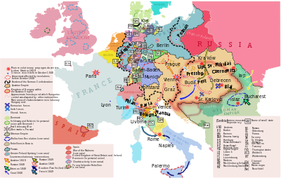W październiku po raz trzeci doszło do zbrojnych walk w Wiedniu. Jednym z tych, którzy dowodzili rewolucjonistami był Polak generał Józef Bem. Przyczyną zamieszek było wysłanie wojsk, które miały stłumić ruchy niepodległościowe na Węgrzech. Cesarz Ferdynand I musiał uciekać z Wiednia, ale jego armia wkrótce stłumiła powstanie. 2 grudnia 1848 roku został zmuszony do abdykacji, a jego miejsce zajął jego bratanek Franciszek Józef. Młody władca nikomu nic nie obiecywał, więc łatwiej było mu rozprawić się z rewolucjonistami niż jego poprzednikowi. Chociaż 4 marca 1849 roku Franciszek Józef nadał konstytucję, to wyraźnie było w niej zapisane, że to on jest źródłem władzy, a nie lud. Dawało mu to możliwość zmiany konstytucji w każdej chwili. Skorzystał z tego już dwa lata później. Kiedy nastroje rewolucyjne zgasły, całkowicie ją odwołał. |
